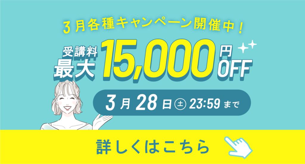 下記対象講座が今だけ15,000円OFFで受講可能。